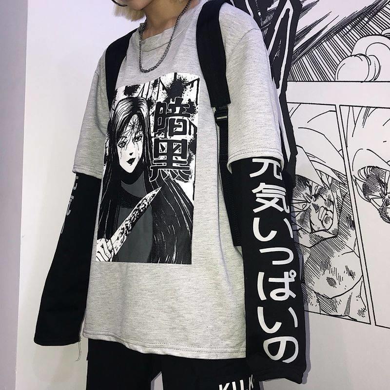 Möchtest du einen Look, der eine Mischung aus Gothic-Fashion und japanischer Streetwear ist? Dieses japanische Anime T-Shirt mit langen Ärmeln ist perfekt für dich!