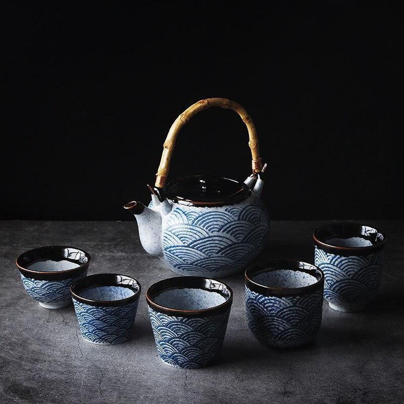 Mit ihrem blauen Wellenmuster ist diese Teekanne aus Keramik ideal, um mit Freunden oder Familie Tee in der Atmosphäre von japanischen Teehäusern zu trinken.