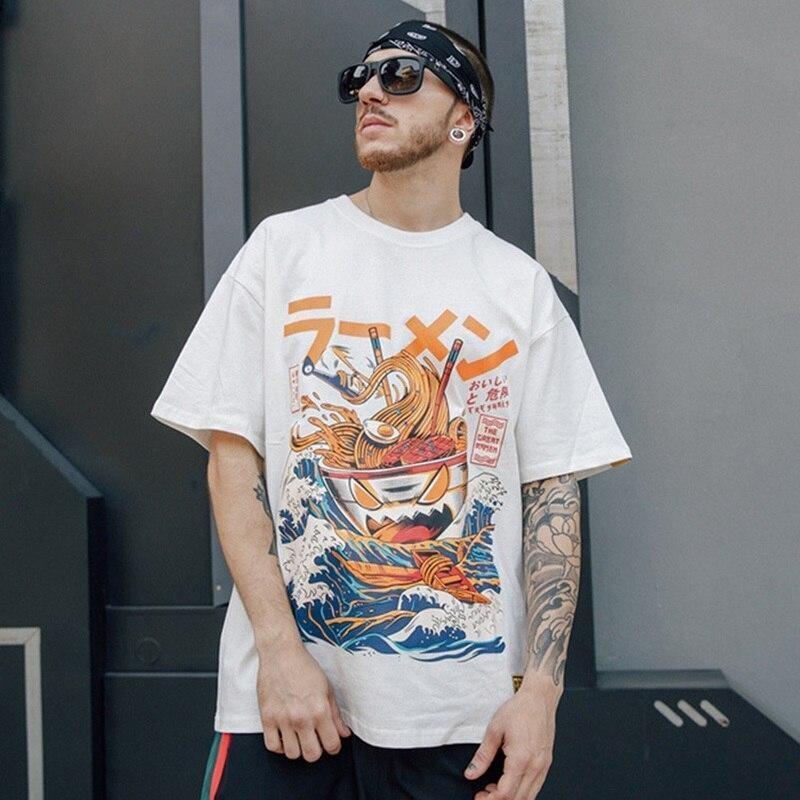 Möchtest du dein japanisches Stadt-Outfit vervollständigen? Dieses japanische T-Shirt mit einem Druck von einer wütenden Schüssel in einem Rahmen könnte genau das sein, was du brauchst!