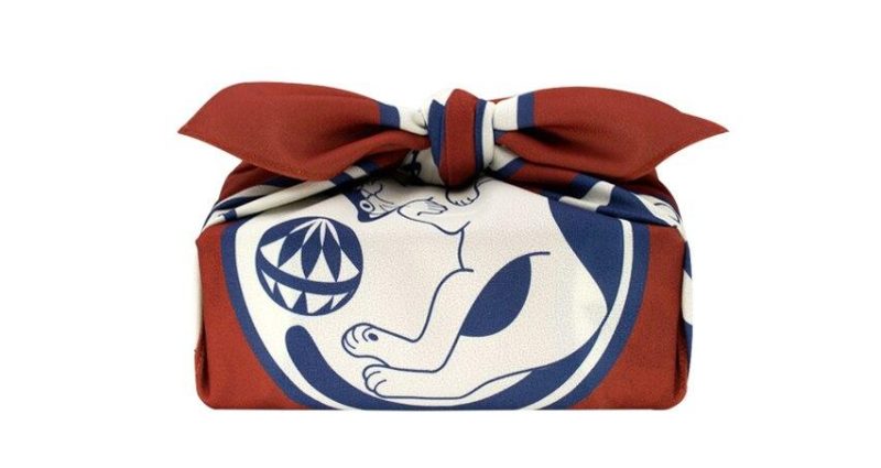 Das japanische Wort Furoshiki bezieht sich sowohl auf diesen quadratischen Stoff als auch auf die Technik des Faltens und Knotens des Stoffes, um Gegenstände einzupacken und zu transportieren.