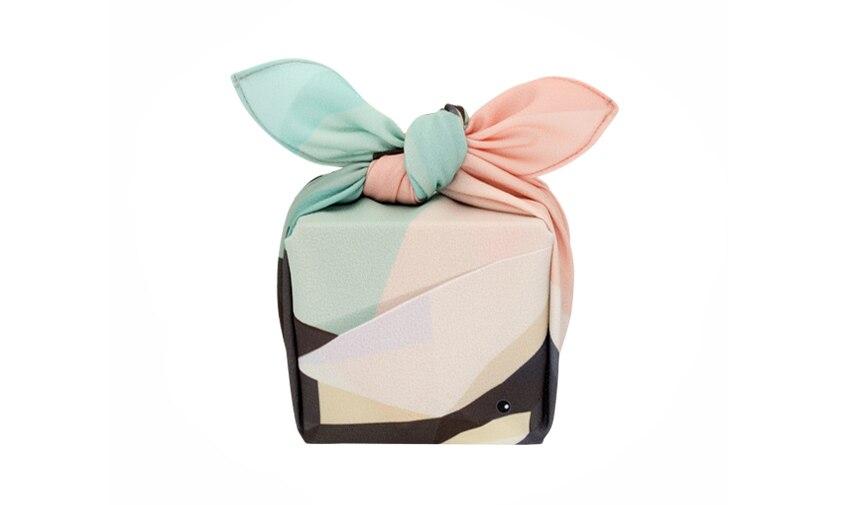 Mit ein paar einfachen Falt- und Knotentechniken können Sie den Furoshiki-Stoff verwenden, um Geschenke einzupacken, ein Bentobox zu tragen oder eine Tasche für unterwegs zu machen.