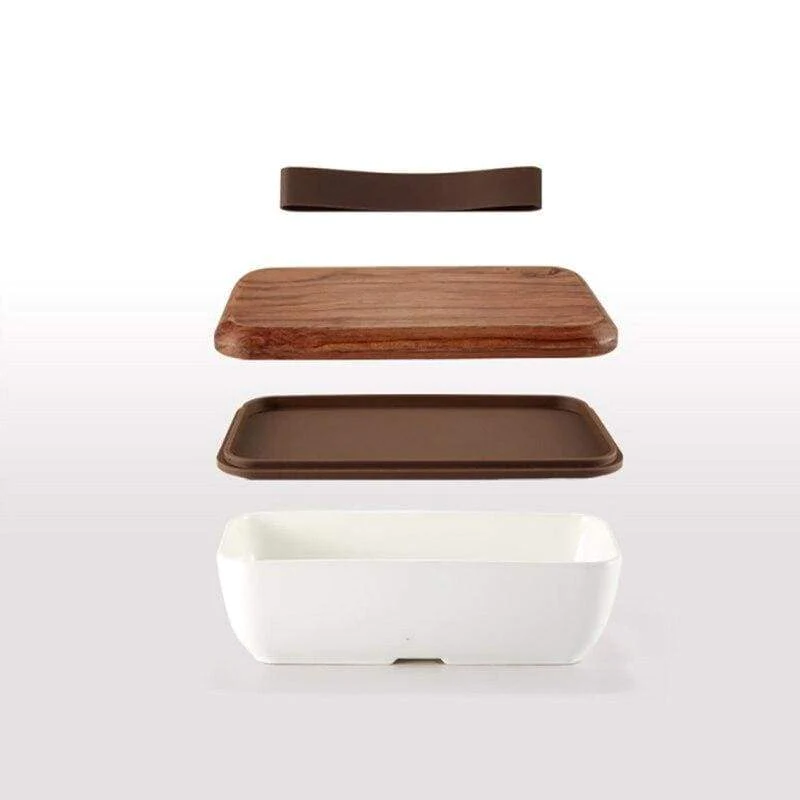 Eine Bento-Lunchbox ist besonders für einen gesunden, ausgewogenen und biologischen Lebensstil geeignet. Bei diesem Modell kann das Kirschbaumversprechen auch als Tablett verwendet werden.