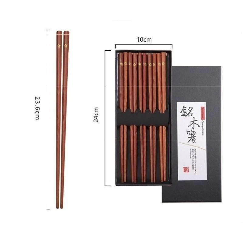 Wenn Sie dieses Set aus Holzessstäbchen kaufen, haben Sie nicht ein Paar, sondern fünf Paare zu Hause! Super praktisch, wenn Sie Freunde zu einem japanischen Essen für einen guten Film einladen.