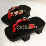 Ein paar wunderschöne japanische Geta-Sandalen mit Blumen: