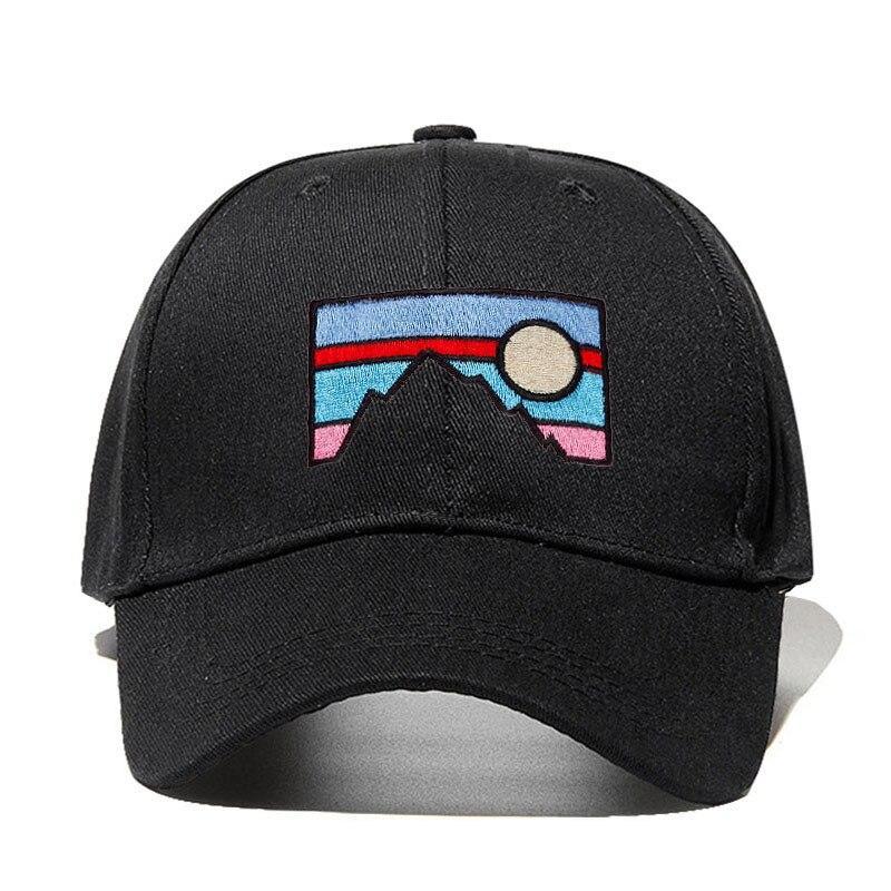 Mit ihrer stilisierten und farbenfrohen Landschaft, die auf der Vorderseite gestickt ist, verleiht diese japanische Kappe Ihrem Outfit den perfekten letzten Schliff.
