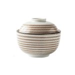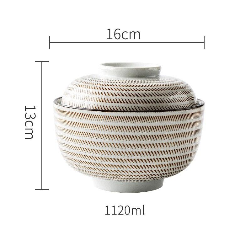 Mit ihrem antiken Aussehen und dem braunen Muster ist diese japanische Schüssel ideal, um verschiedene traditionelle Gerichte wie Ramen oder Reis zu präsentieren. Sie können darin auch ganz einfach Suppen zubereiten, wenn Sie möchten.