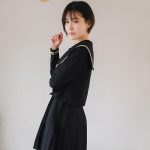 Dieses marineblaue Kawaii-Outfit besteht aus einem marineblauen Oberteil mit Bindekragen und einem gefältelten Rock. Für authentischen japanischen Stil sind die hohen Socken perfekt.