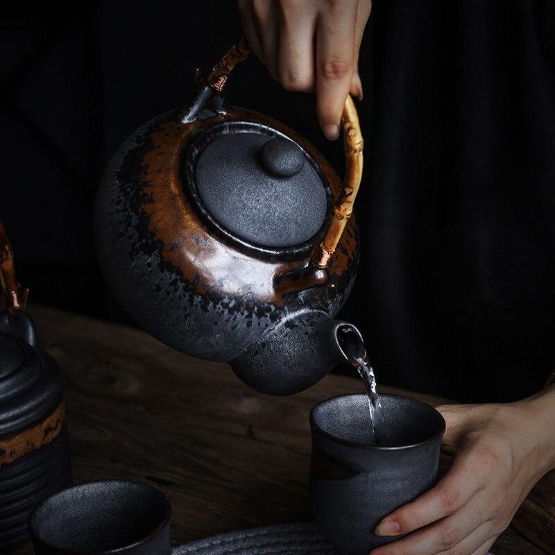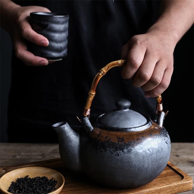 Nehmen Sie sich die Zeit, Ihren Tee auf die richtige Weise zu genießen mit dieser großen japanischen Teekanne im Retro-Stil. Mit ihrem natürlichen Griff und der schwarzen Farbe werden Sie das Teetrinken in einer ruhigen und entspannten Atmosphäre genießen.