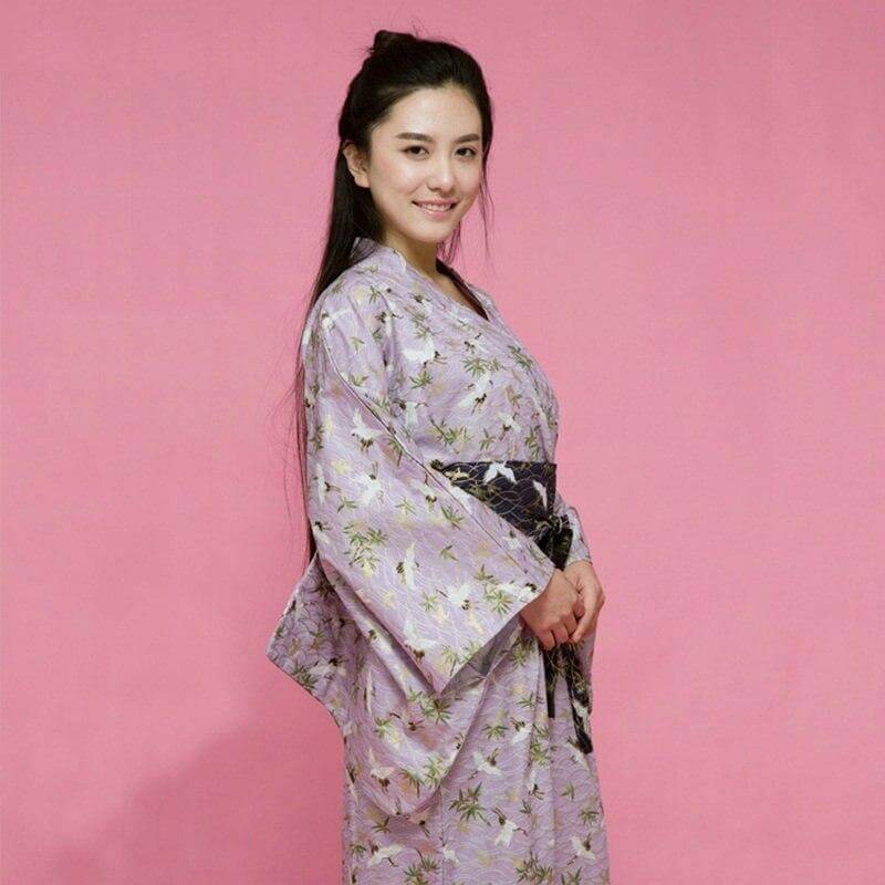 Mit seiner lila-roten Farbe und den Kirschblüten ist dieser Japanische Yukata für Damen ganz anders als die anderen Modelle, die wir normalerweise sehen.