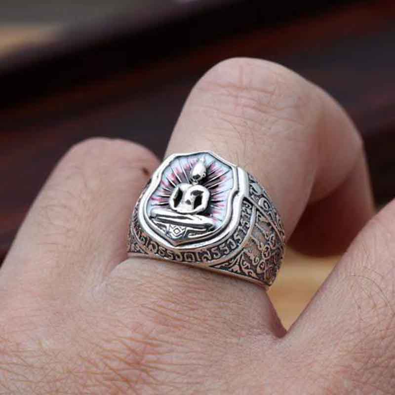 Der hier verkörperte Buddhismus ermöglicht es Ihnen, zu meditieren, indem Sie diesen buddhistischen Ring in Ihrem täglichen Leben tragen. Er hilft Ihnen, schwierige Momente zu überwinden.