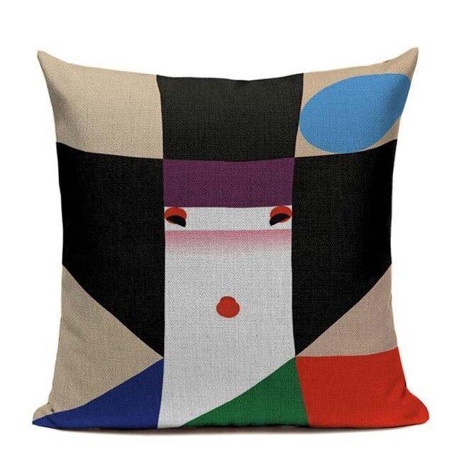 Die kubusförmigen Formen dieses Kissenbezugs mit japanischem Design bilden das Porträt einer Geisha mit Haar und Make-up als Hommage an die japanische Eleganz.