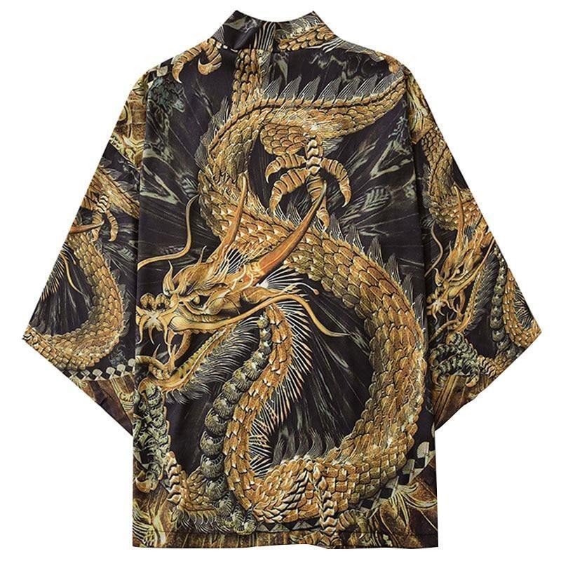 Ein kurzer Kimono mit einem geheimnisvollen goldenen Drachen: