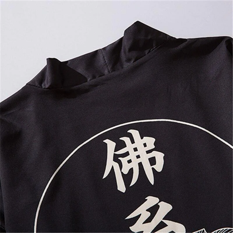 Ein kurzer dunkler Kimono mit starken spirituellen Symbolen: