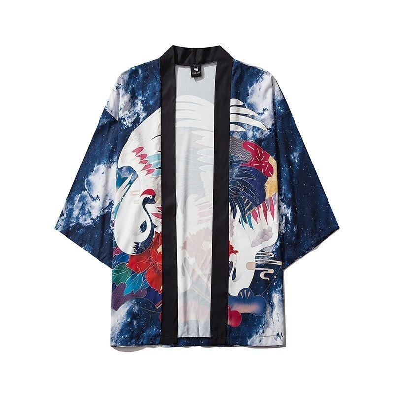 Ein sublimer kurzer Kimono mit japanischem Vogelmotiv: