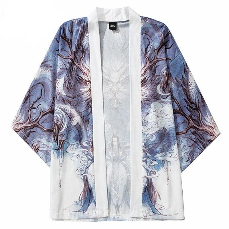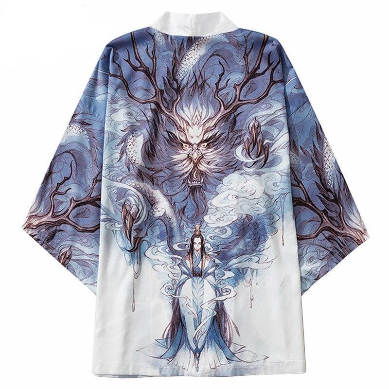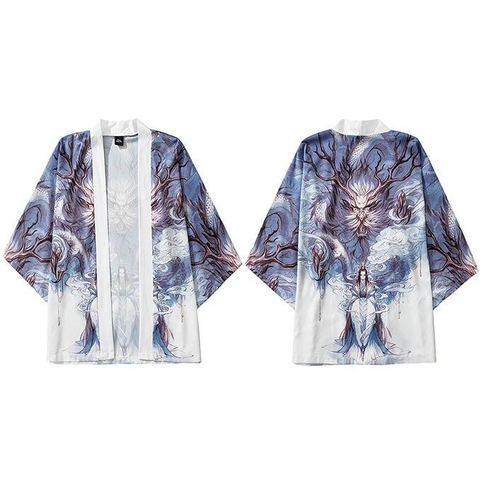 Ein wunderschöner Drache, der die Träume einer Frau durch diesen japanischen kurzen Kimono verschönert: