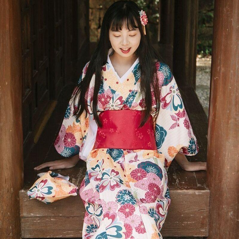 Schlüpfen Sie in die Rolle einer japanischen Frau auf einer Kostümparty, Cosplay oder Festival, indem Sie diesen wunderschönen Baumwoll-Kimono für Frauen tragen.