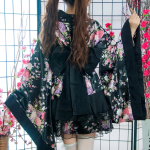 Nehmen Sie einen marginalen und provokanten Stil mit diesem kurzen schwarzen japanischen Kimono an!