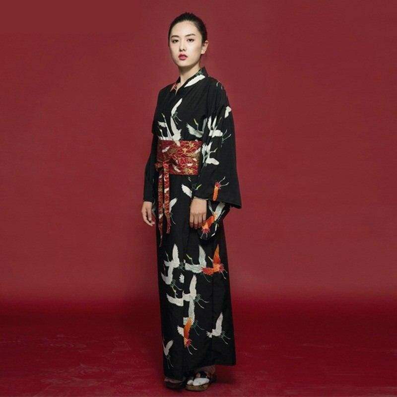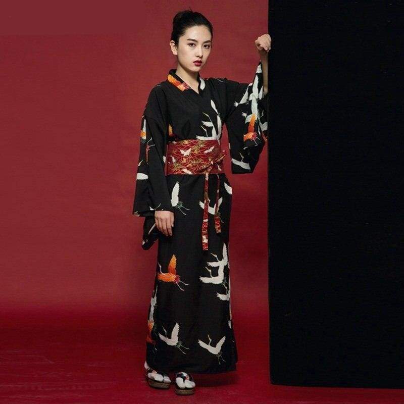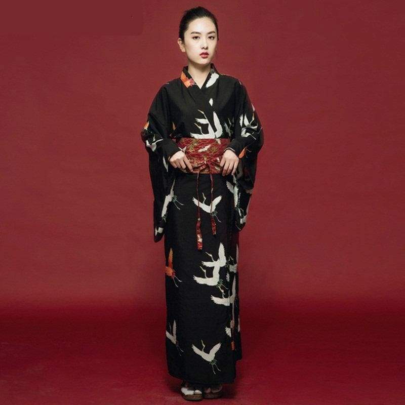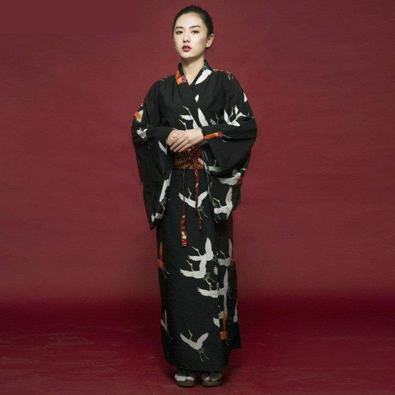 Wenn du jemals die Gelegenheit hast, in das Land der aufgehenden Sonne zu reisen, trage diesen schwarzen japanischen Kimono für Frauen mit einem Kranichmuster! Du wirst dich perfekt in diese Kultur integrieren können.