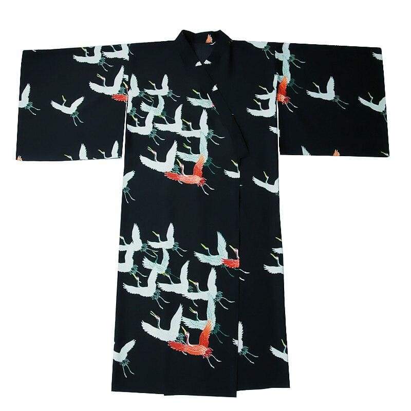 Ein schwarzer Kimono für Frauen mit einem Muster von japanischen Kranichen: