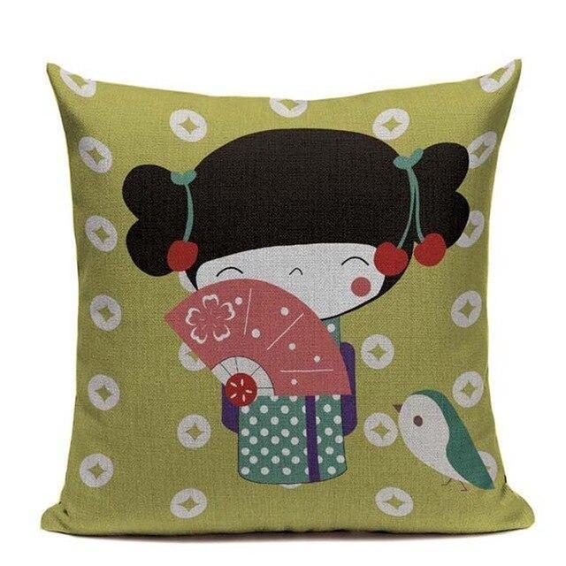 Dieser japanische Kissenbezug ist süß mit seinem Kawaii Geisha Design. Das Leinwand- und Baumwollmaterial ist von höchster Qualität.