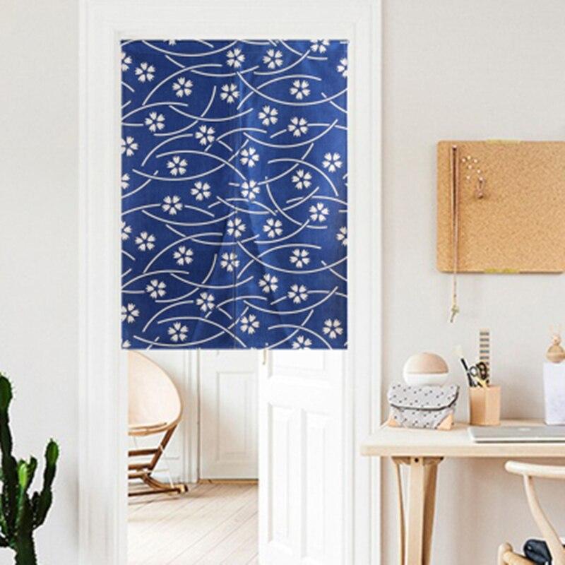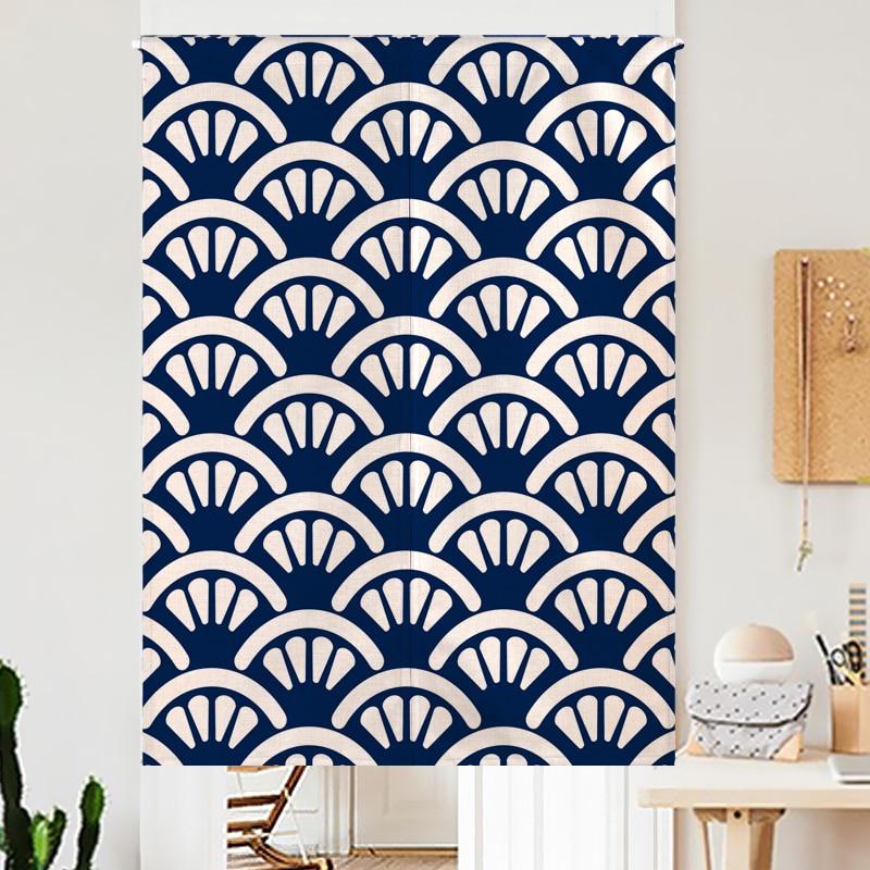 Diese blauen Noren Vorhänge mit traditionellen japanischen Mustern sind wichtige Elemente der japanischen Innenarchitektur.