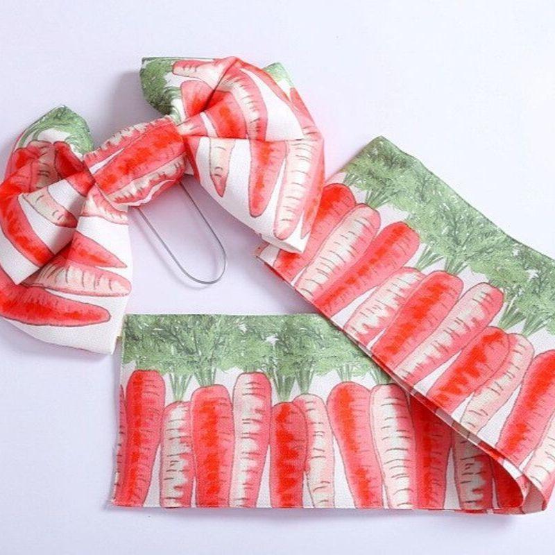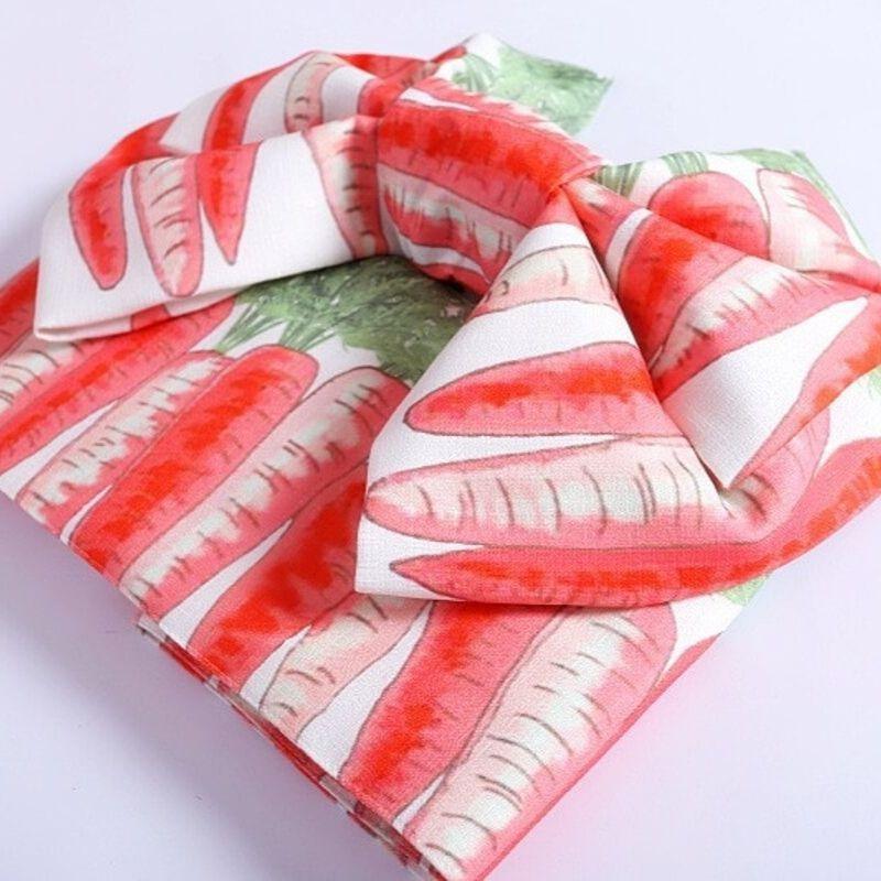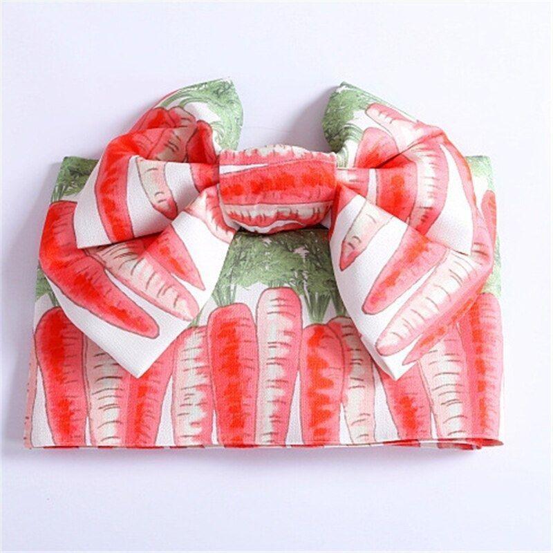 Ein originaler Obi-Gürtel für Damen, mit einem Druck von einer Reihe Karotten. Dank des dicken und steifen Stoffes lässt er sich leicht anlegen, um Ihre Kimono oder Yukata zu schließen.