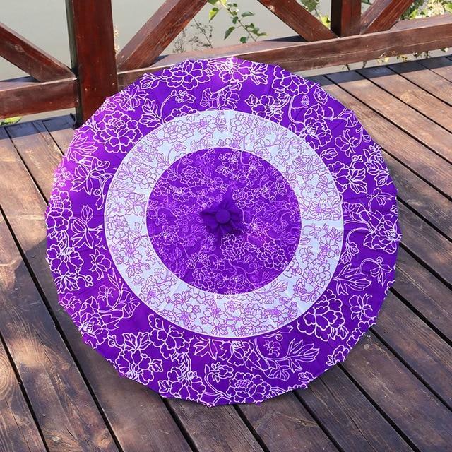 Ein schöner japanischer Regenschirm mit einer lila Blume in einem Kreis: