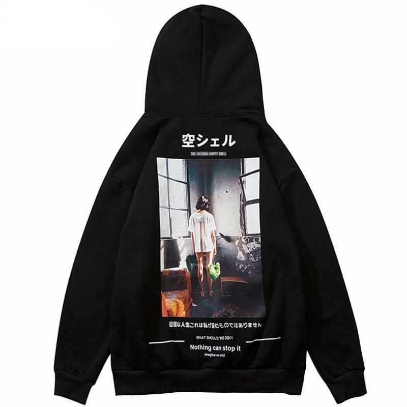Kreiere einen japanischen Streetwear-Stil mit diesem Hoodie mit japanischen Zeichen und entdecke diesen weit verbreiteten Look unter der japanischen Jugend!
