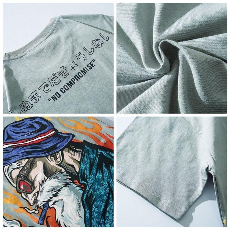 Auf der Rückseite steht ein Satz auf Japanisch, ins Englische übersetzt: "No compromise". Eines ist sicher, dieses hochwertige T-Shirt macht keine Kompromisse zwischen Stil und Komfort.