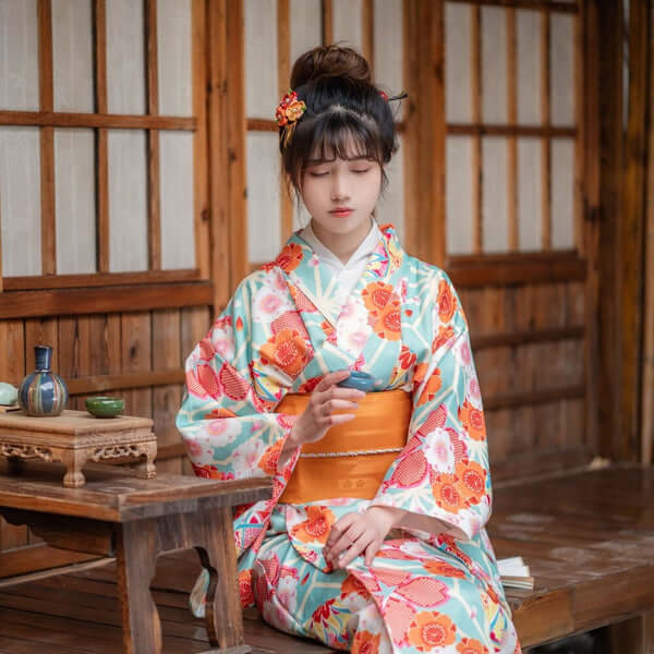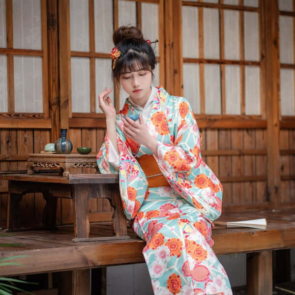 Umarme die japanische Eleganz, indem du dieses wunderschöne japanische Kimono für Frauen trägst.