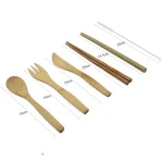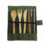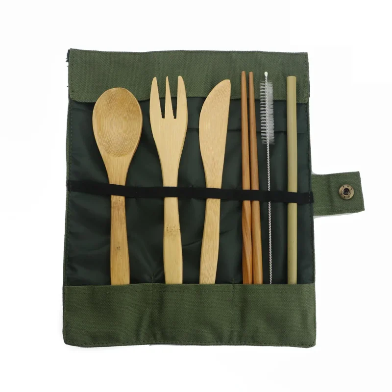 - Das Besteckset enthält: 1 Messer, 1 Gabel, 1 Löffel, 1 Paar japanische Essstäbchen, 1 Strohhalm, 1 Bürste für das Strohhalm, 1 Stoffbeutel zur Aufbewahrung des Bestecks.