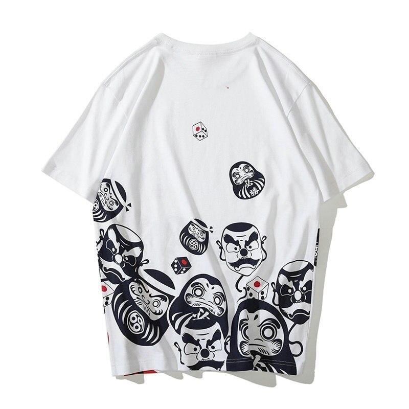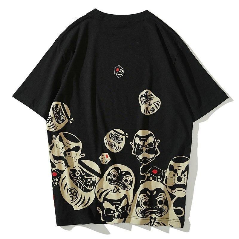 Zieh den Hip-Hop-Stil an und falle in deinem coolen T-Shirt auf, das mit einem Daruma mit bösem Gesicht verziert ist. Das Design dieser kleinen japanischen Papiermaché-Figuren ist sehr stilvoll.
