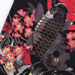 Erschaffe einen japanischen Look mit diesem japanischen T-Shirt, das mit einem Koi-Karpfen bestickt ist, einem symbolischen Tier Japans. Dieser Fisch steht für Liebe und Männlichkeit.