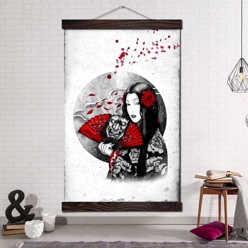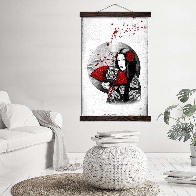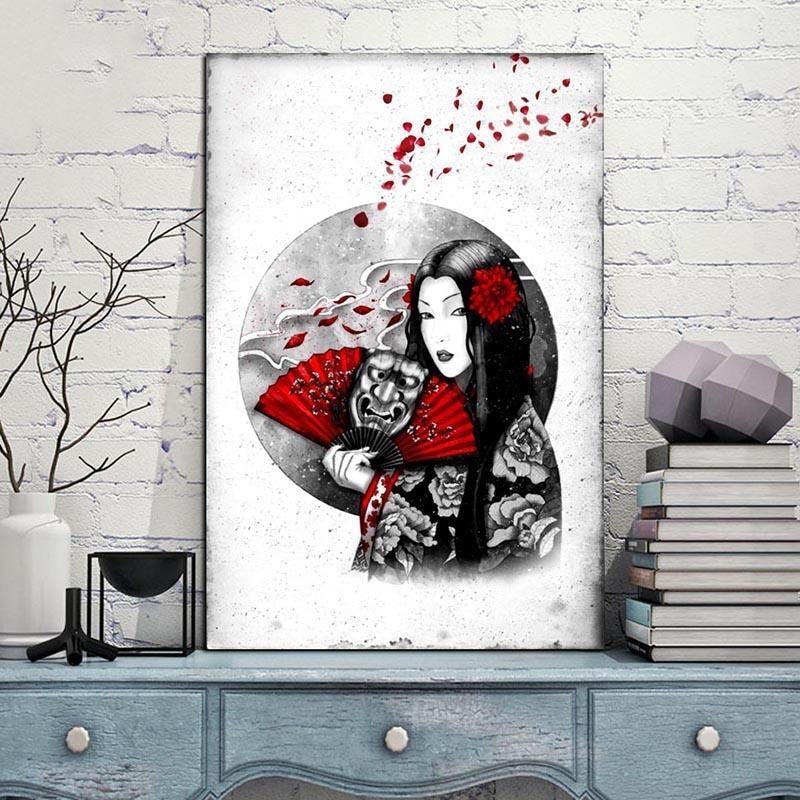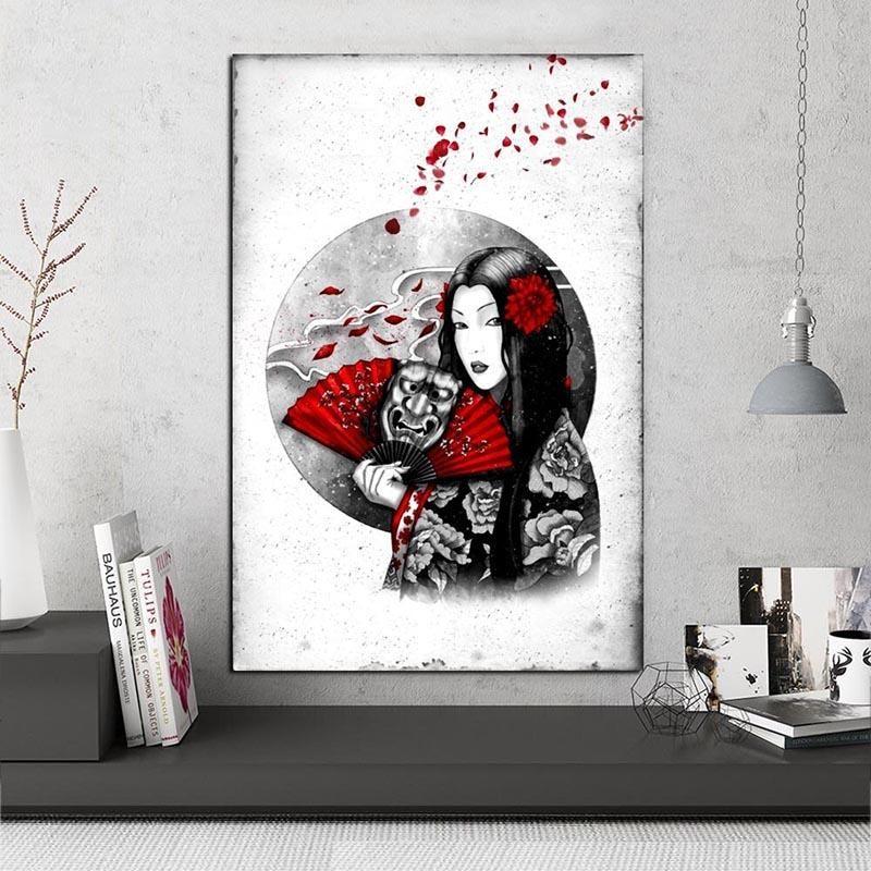 Für ein einzigartiges und elegantes Interieur wählen Sie dieses japanische Gemälde und seine verführerische Version des Dämons Hannya.