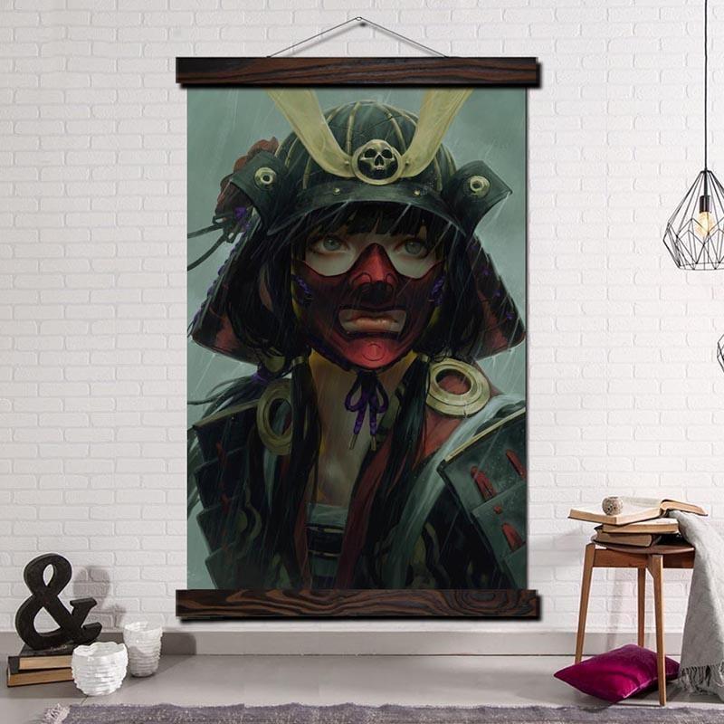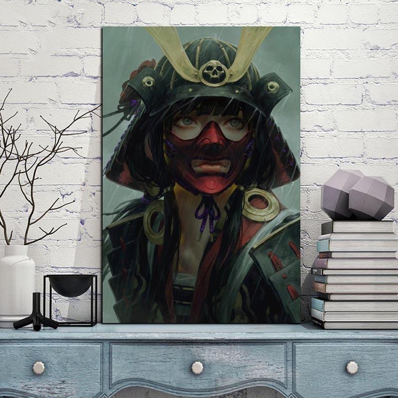 Schaffen Sie eine einzigartige Atmosphäre in Ihrem Zuhause mit diesem modernen japanischen Gemälde einer Samurai-Frau im Regen.