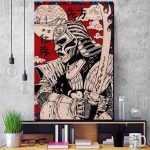 Ein Manga-Gemälde in Form eines mächtigen japanischen Kriegers: