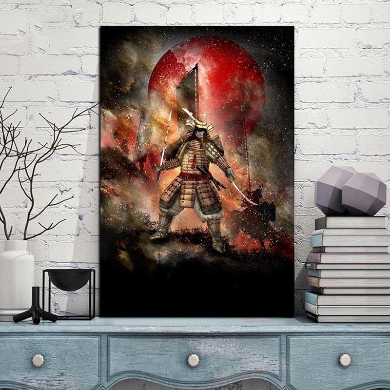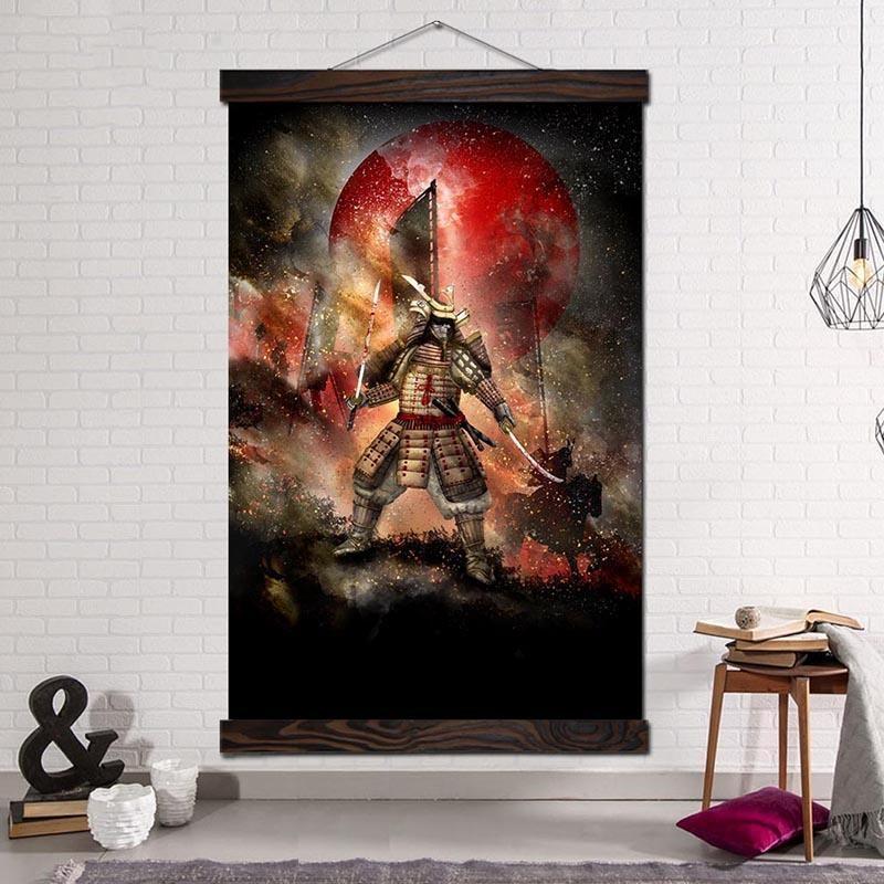 Ein wunderschönes japanisches Gemälde mit einem Krieger auf dem Schlachtfeld: