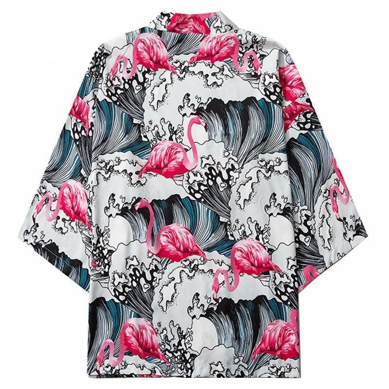 Merkmale der Kimono-Jacke mit Flamingo-Muster: