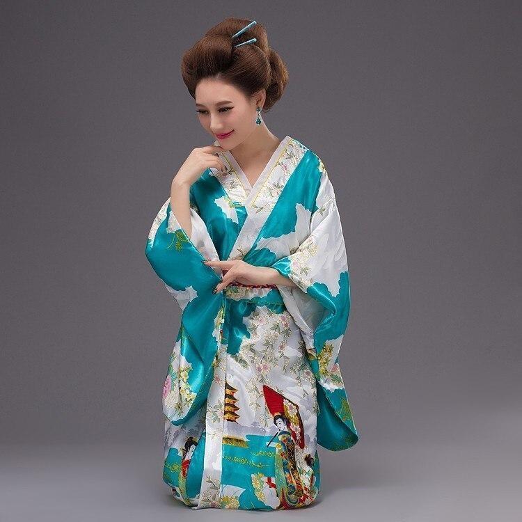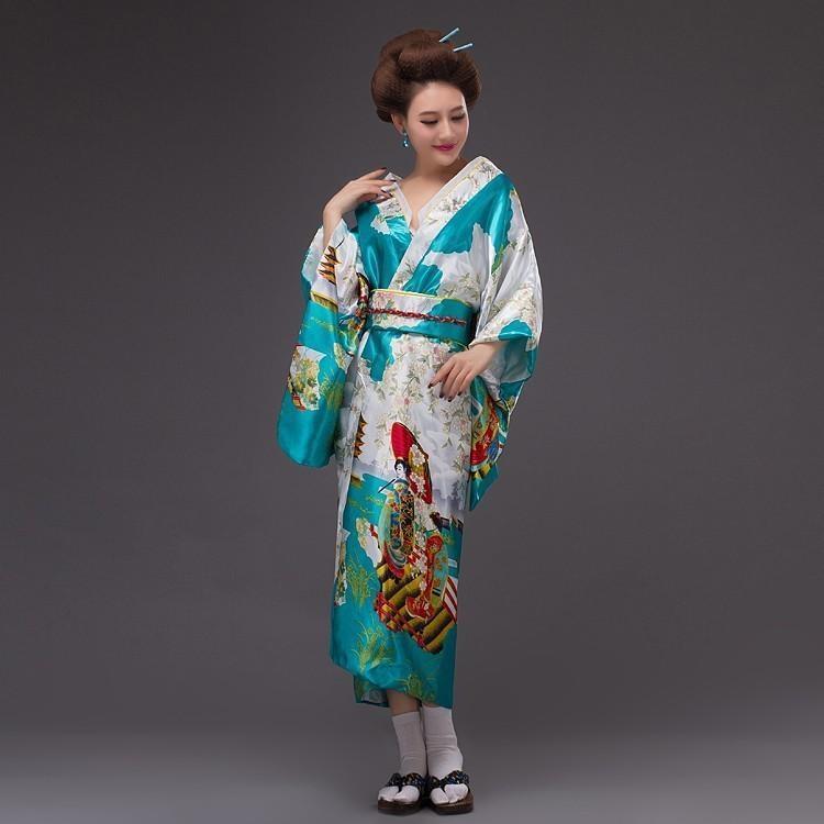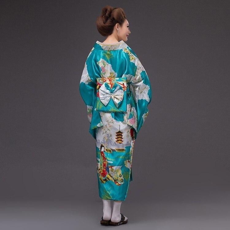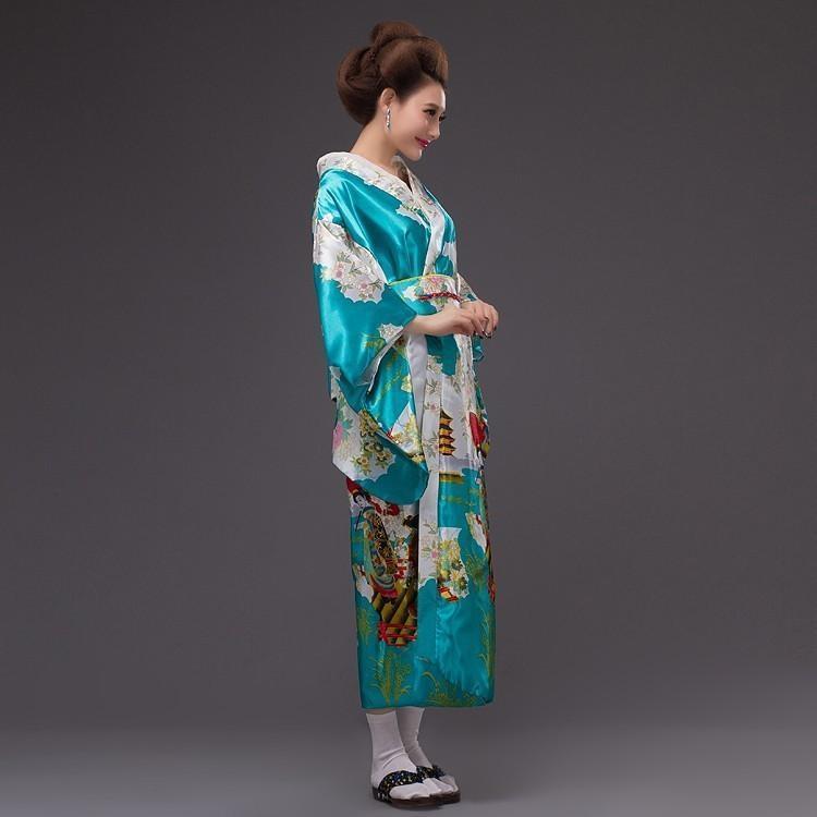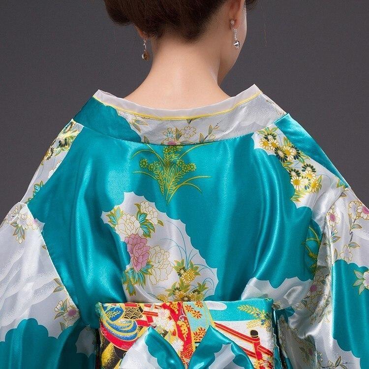 Dieser traditionelle japanische Kimono ist die Definition von japanischer Eleganz. Der Polyester-Satin-Stoff dieses Kimono ist fließend und weich, fühlt sich angenehm auf der Haut an und passt sich allen Körperformen an.