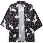 Auf diesem Haori-Jäckchen ist ein wunderschöner Kranich im Flug abgebildet. Ihre majestätische Art macht diese japanische Kleidung elegant und schick. Die schwarze Farbe verleiht Ihrem Outfit eine zeitlose Note.