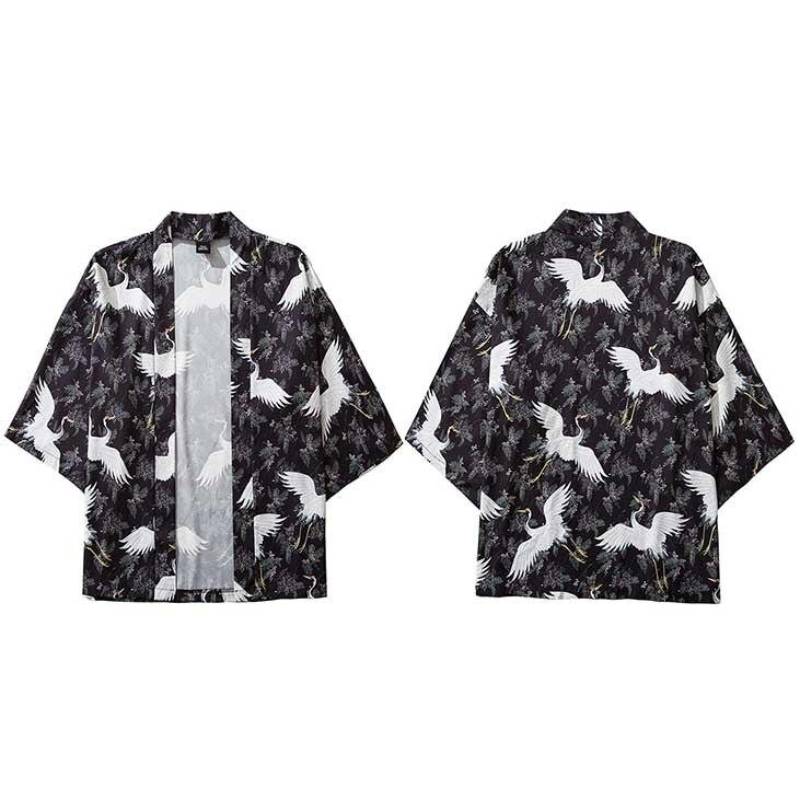 Merkmale des kurzen Kimono mit Kranichen: