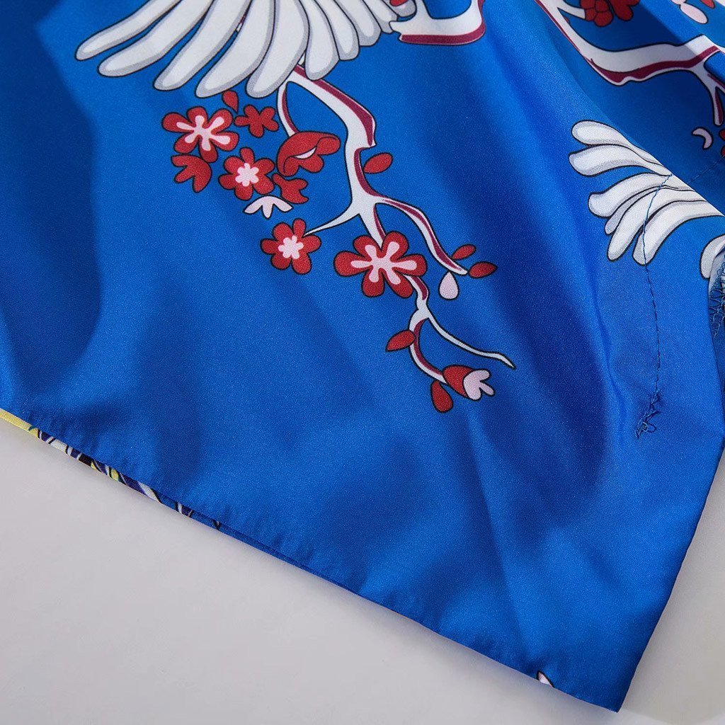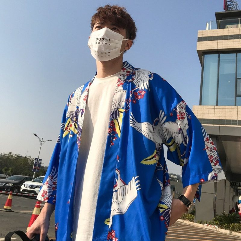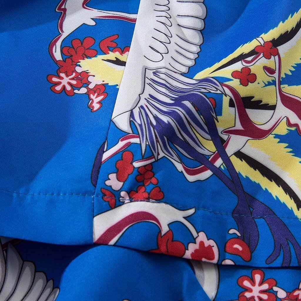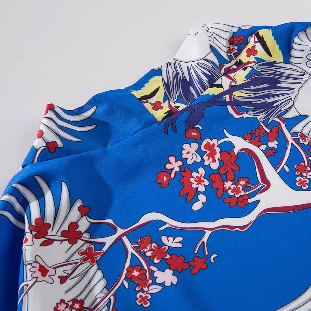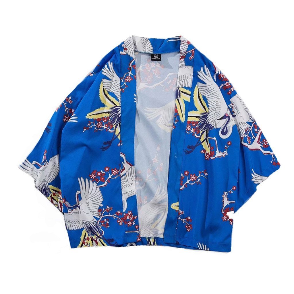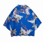 Ein blauer kurzer Vintage-Kimono mit Kranich: