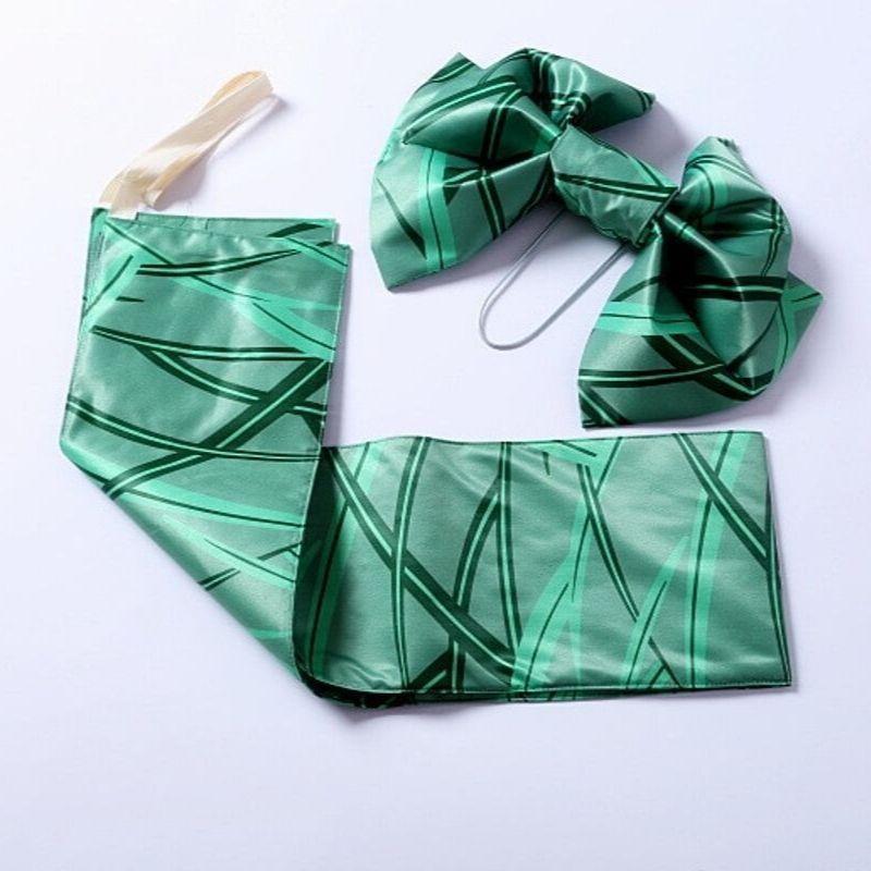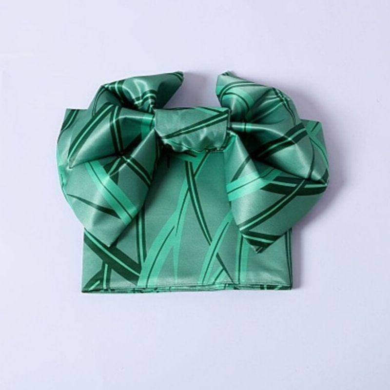 Ein Obi-Gürtel für Damen mit schönen satinartigen Reflexionen und einer grünen Farbe, die einen Kimono oder Yukata schön schließt. Durch den dicken und steifen Stoff ist er leicht anzuziehen und verleiht im Handumdrehen eine elegante Ausstrahlung.