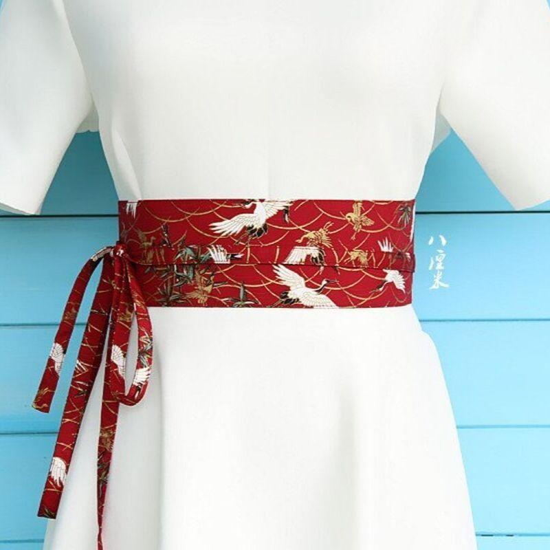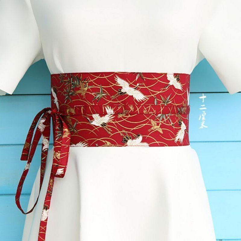Roter Obi-Gürtel mit Kranichen