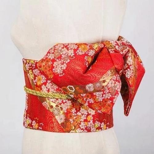 Merkmale des Roten Satin Blumen Obi-Gürtels: