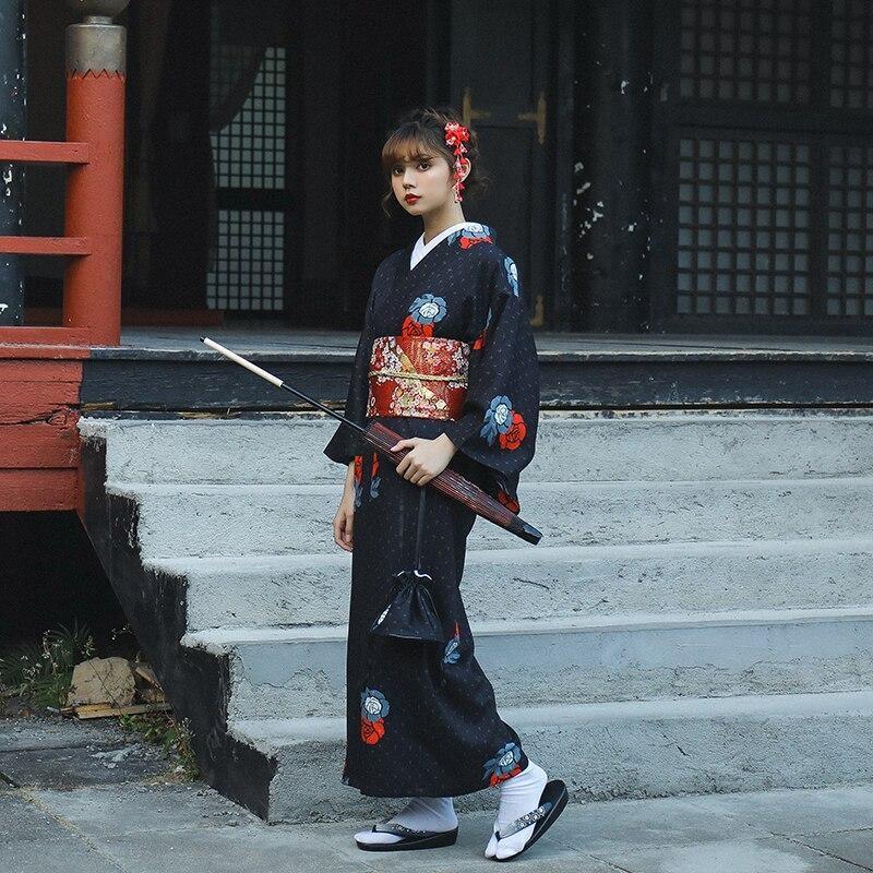Ein einfacher und eleganter schwarzer japanischer Kimono für Frauen: