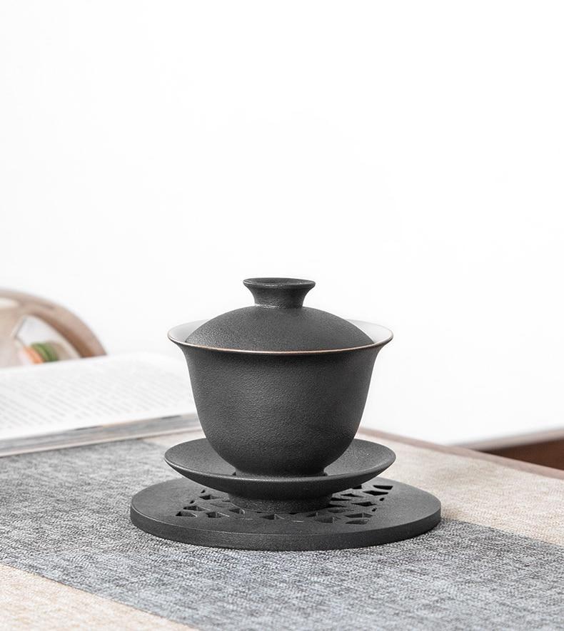 Genießen Sie einen köstlichen Tee in dieser wunderschönen handgefertigten Keramiktasse mit Deckel und Untertasse. Ein wirklich außergewöhnliches Produkt für Teeliebhaber.